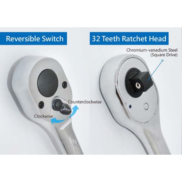 دسته جغجغه 3/8 درایو برند کینگ تونی تایوان با طراحی به فرم جغجغه 3/8 برند اسناپ اون امریکاست . این جغجغه 32 دندانه و اصطلاحا دندانه درشت است که دوام آن را افزایش می دهد . بدنه ساخته شده از فولاد آلیاژی کروم وانادیوم و درایو و جغجغه از فولاد آلیاژی کروم مولیبدنیوم است . این دسته جغجغه برای مدت های طولانی محبوب و مورد استفاده بوده است.